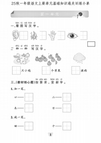 25秋一年级语文上册单元基础知识通关训练小单含答案