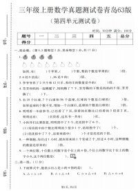 三年级(上)数学第四单真题元测试卷3《青岛63版》