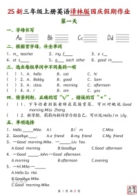 25新三年级上册英语译林版国庆假期作业(无答案版)