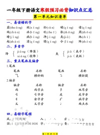 一年级下册语文寒假预习必备知识点汇总SY