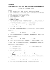 三年级上册数学提高卷01期末质量检测(考试版A4)