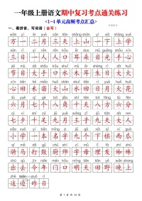 25新一年级上册语文期中复习考点通关练习
