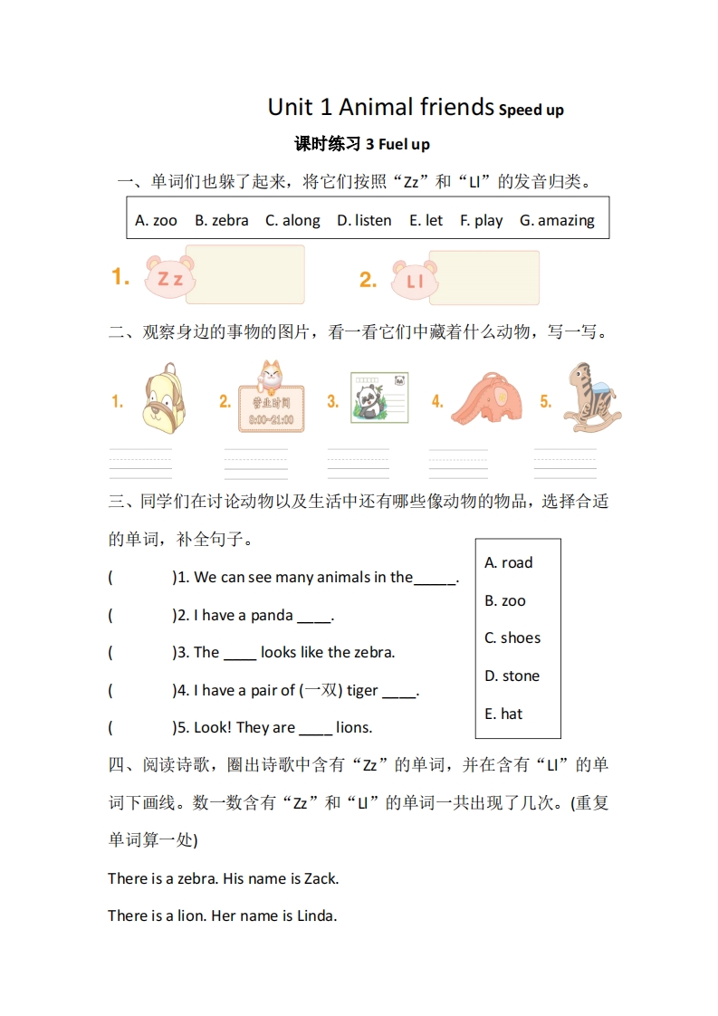Unit 1 Animal friends课时练习3 Fuel up(含答案)