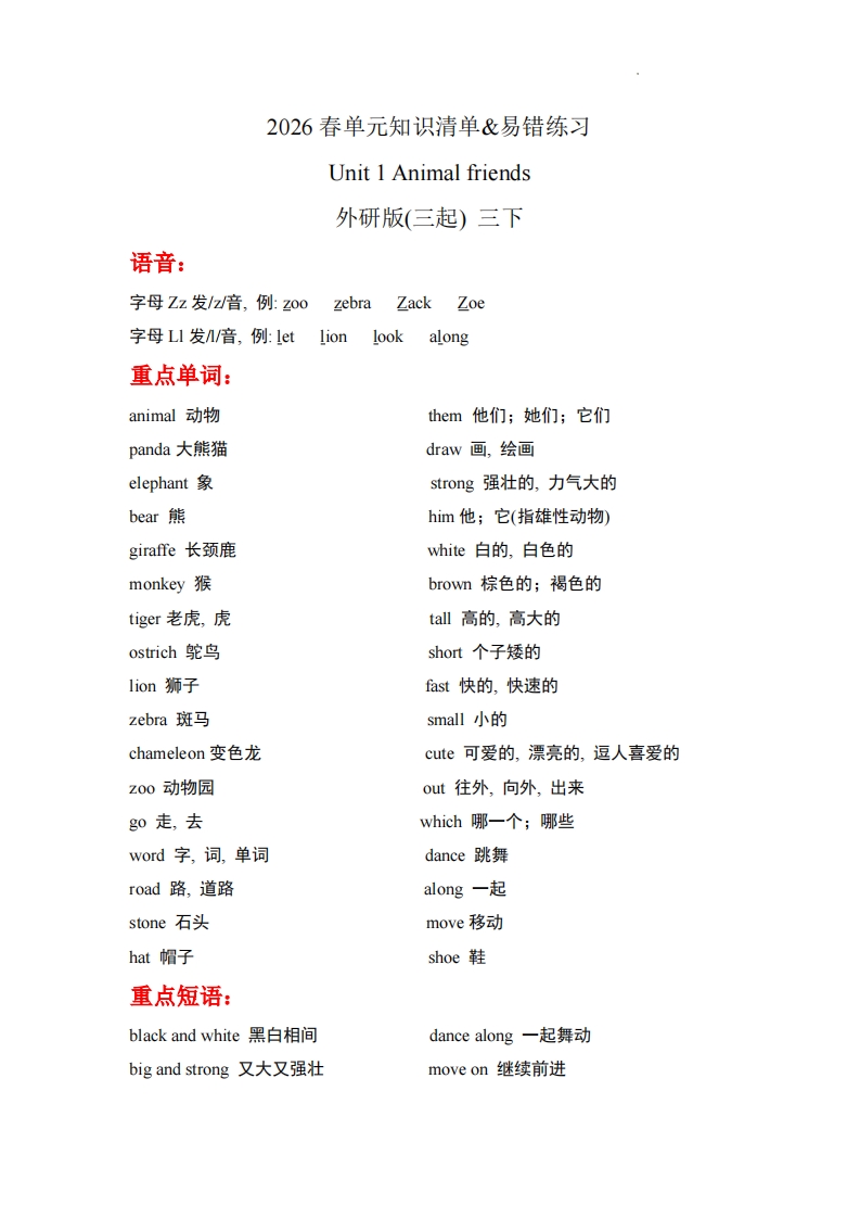 【外研版】三下英语 Unit1 知识清单