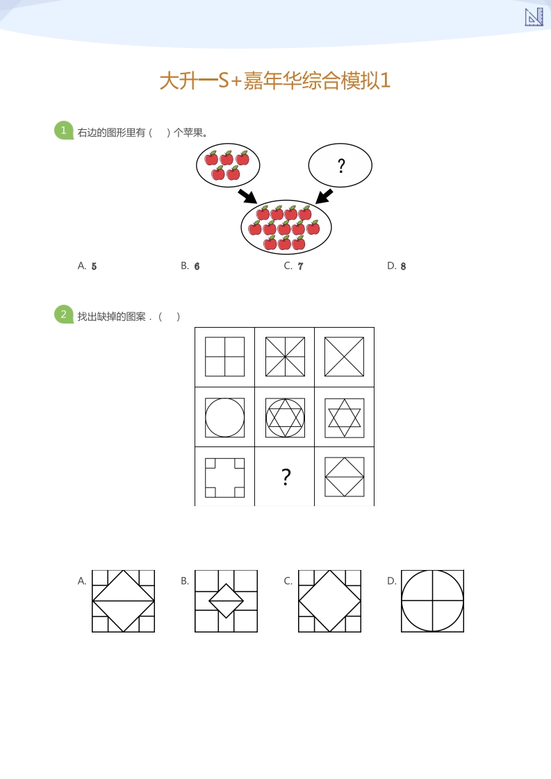 首页幼小衔接数学试卷大升一S+嘉年华综合模拟1(学生版)