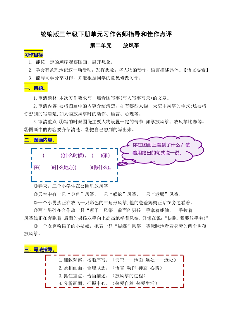 部编版三年级下册第2单元《放风筝》写作指导+范文赏析+名师指导