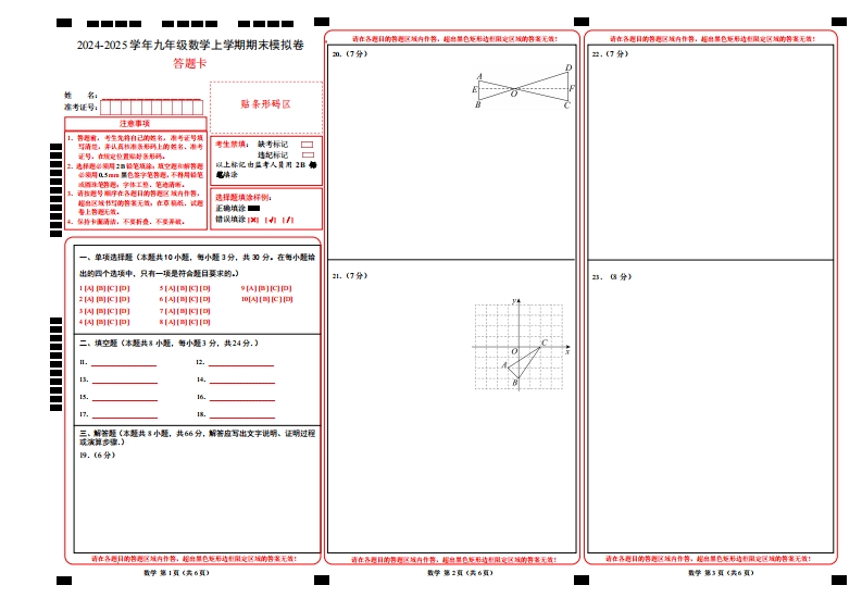 首页九年级数学上册【人教54】9上数学期末卷(答题卡)0