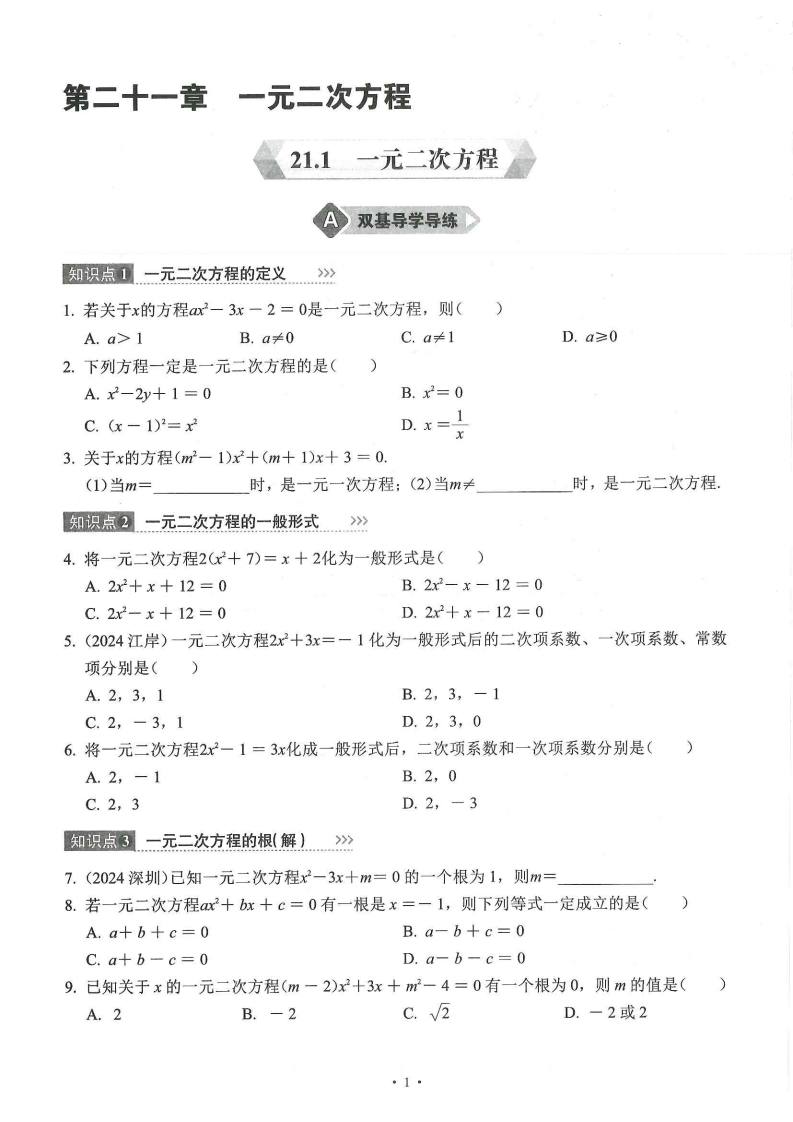 首页九年级数学上册2025秋9上人教版数学练习册
