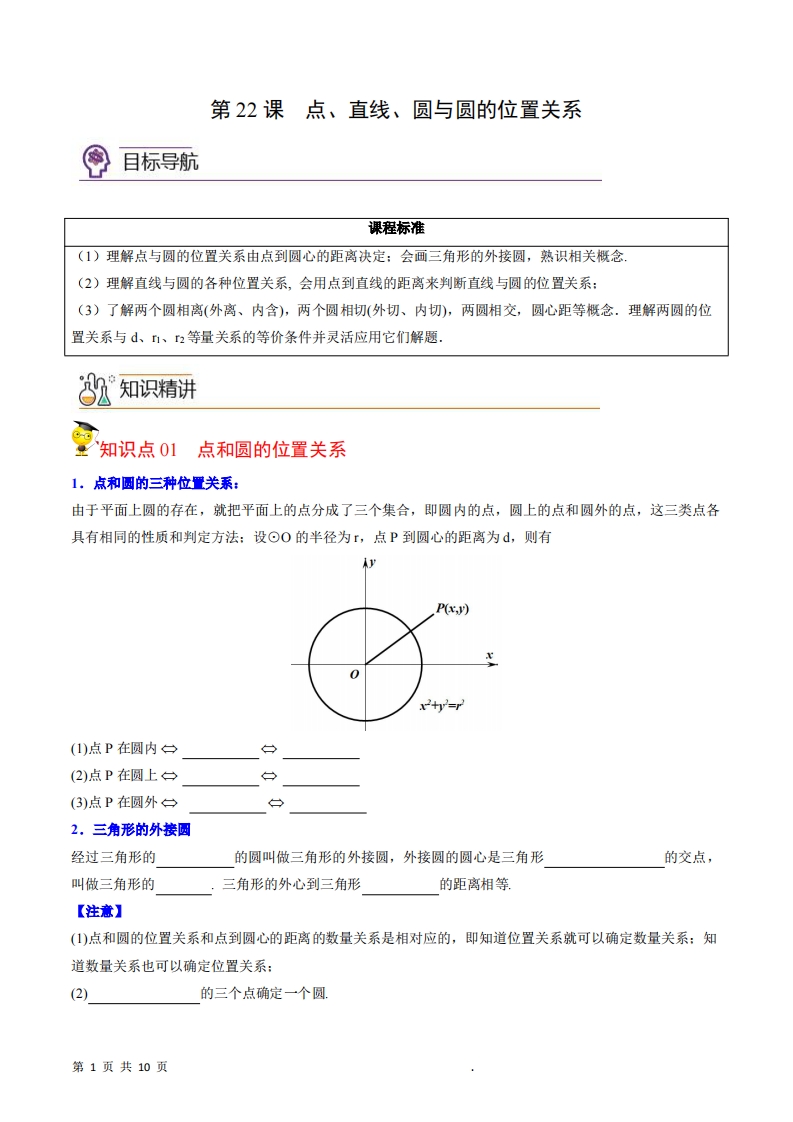 九年级(上)数学 点、直线、圆与圆的位置关系同步讲义(人教版))