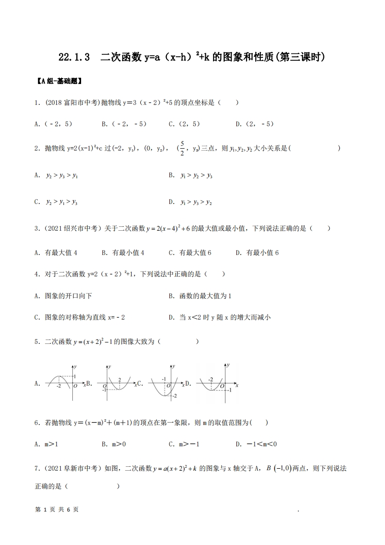 首页九年级数学上册九年级(上)数学 二次函数y=a(x-h)^2+k的图象和性质(第三课时)分层作业(人教版)