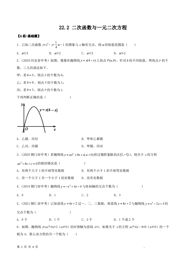 首页九年级数学上册九年级(上)数学 二次函数与一元二次方程分层作业(人教版)