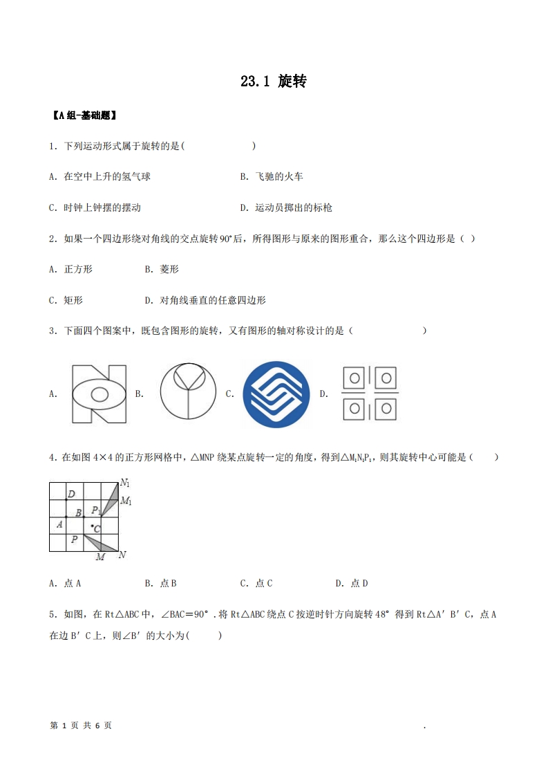 首页九年级数学上册九年级(上)数学 旋转分层作业(人教版)