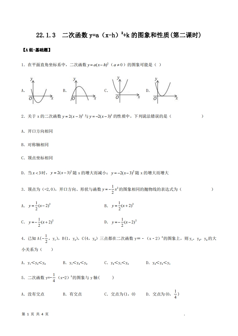 首页九年级数学上册九年级(上)数学 二次函数y=a(x-h)^2+k的图象和性质(第二课时)分层作业(人教版)