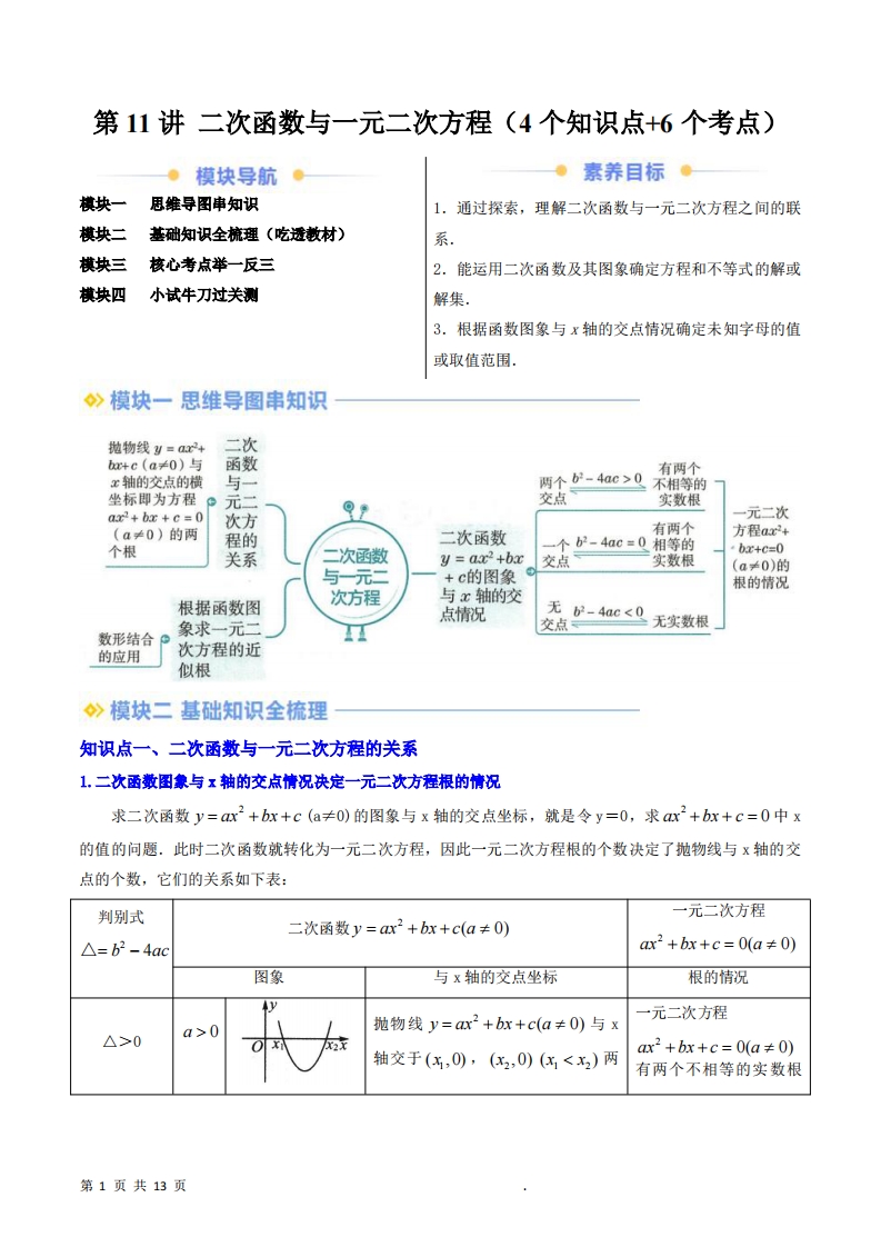 九年级(上)数学 二次函数与一元二次方程暑假自学课(人教版)