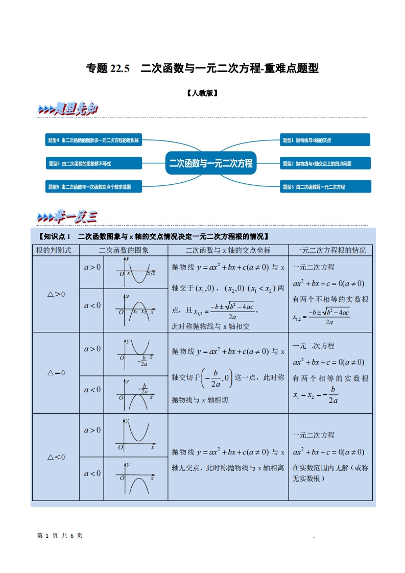 九年级(上)数学 二次函数与一元二次方程重难点题型(人教版)