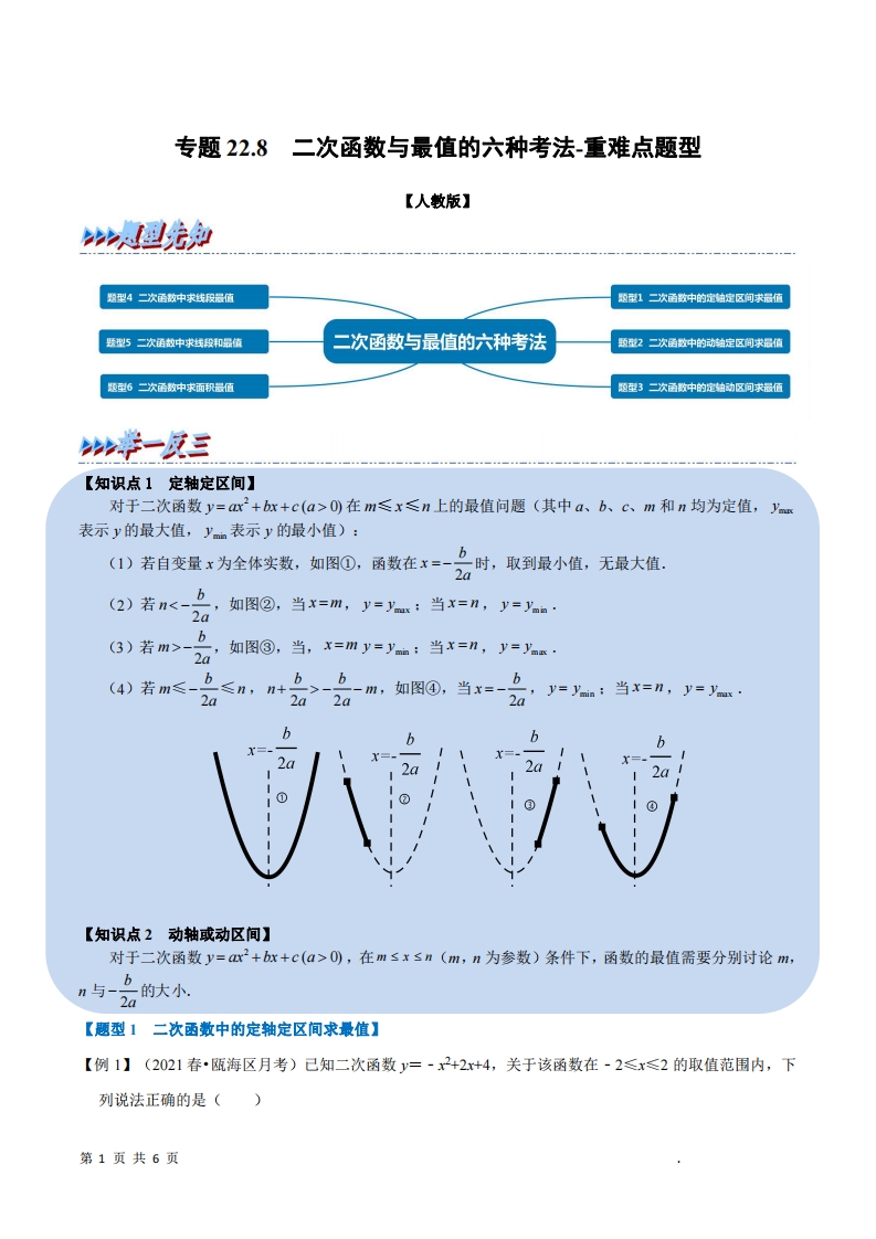 首页九年级数学上册九年级(上)数学 二次函数与最值的六种考法重难点题型(人教版)