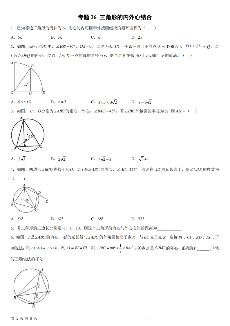 首页九年级数学上册九年级(上)数学 三角形的内外心结合(人教版)