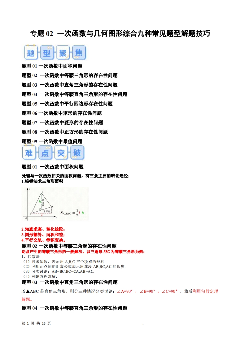 九年级(上)数学 一次函数与几何图形综合九种常见题型解题技巧重点复习(人教版)