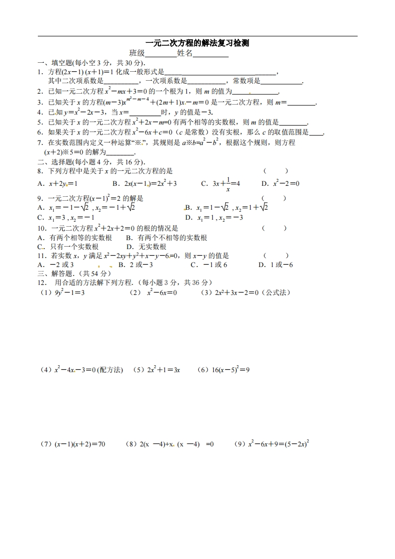 首页九年级数学上册九年级(上)数学 一元二次方程的解法复习检测(苏科版)