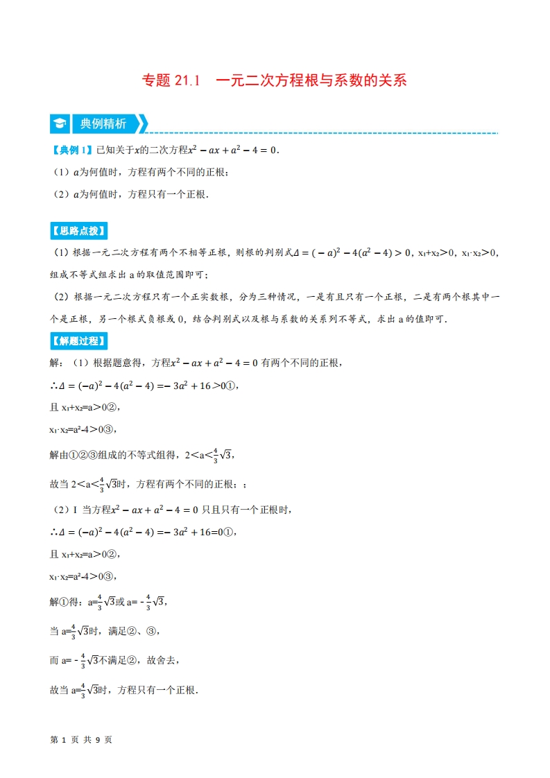 首页九年级数学上册九年级(上)数学 一元二次方程根与系数的关系(压轴题专项讲练)(人教版)