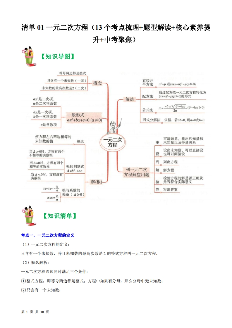 九年级(上)数学 一元二次方程考题清单(人教版)
