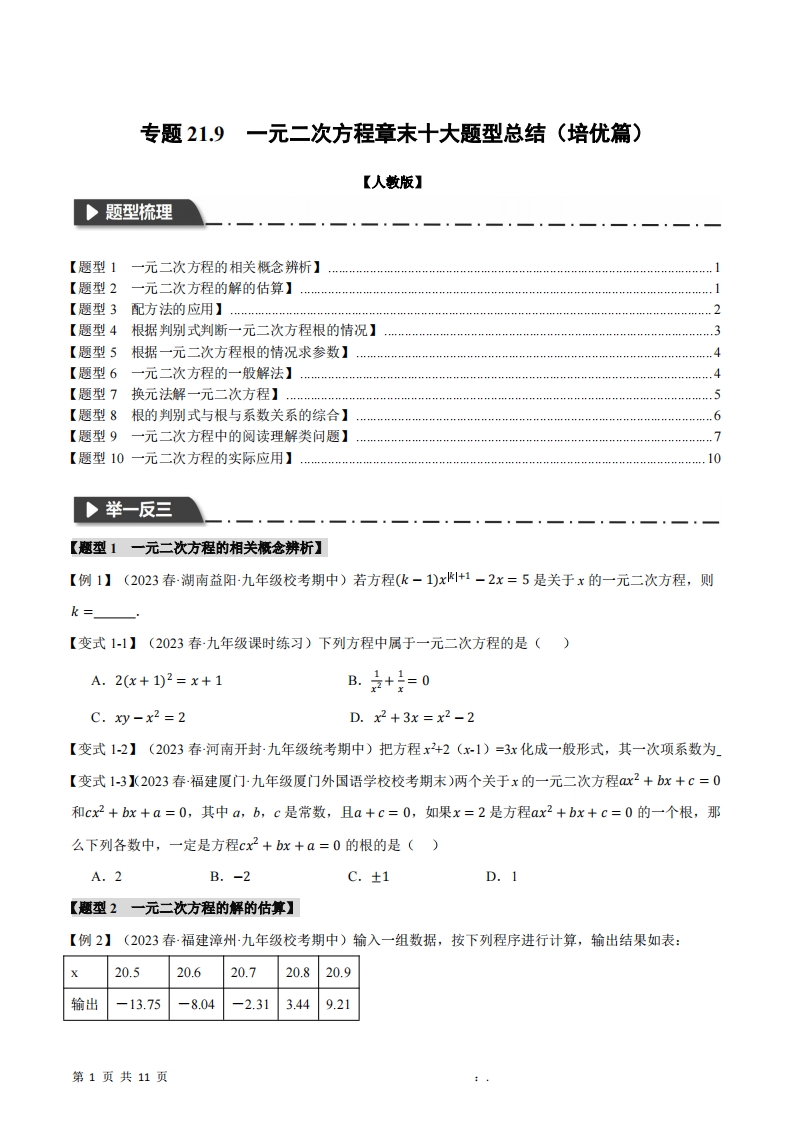 九年级(上)数学 一元二次方程章末题型总结(培优卷)(人教版)