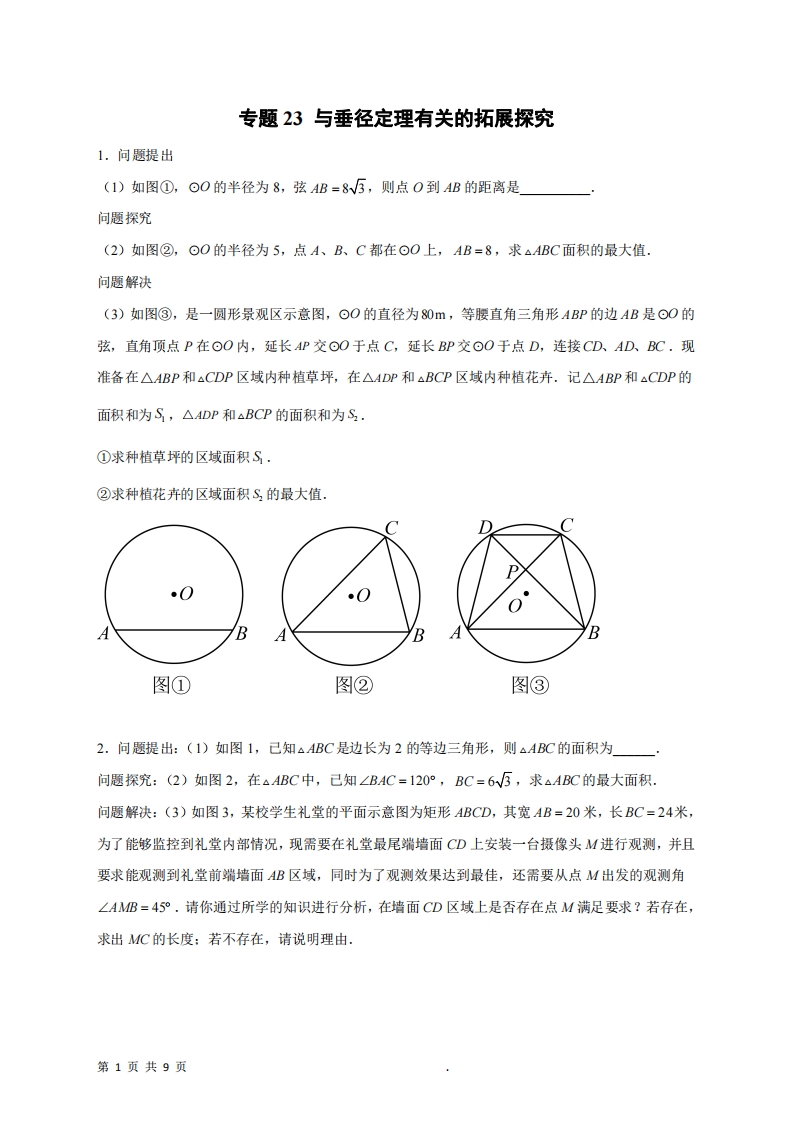 九年级(上)数学 与垂径定理有关的拓展探究(人教版)