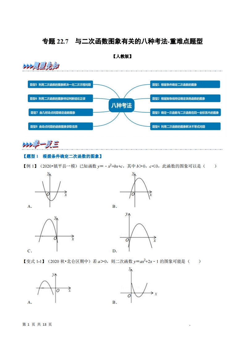 首页九年级数学上册九年级(上)数学 与二次函数图像有关的八种考法重难点题型(人教版)