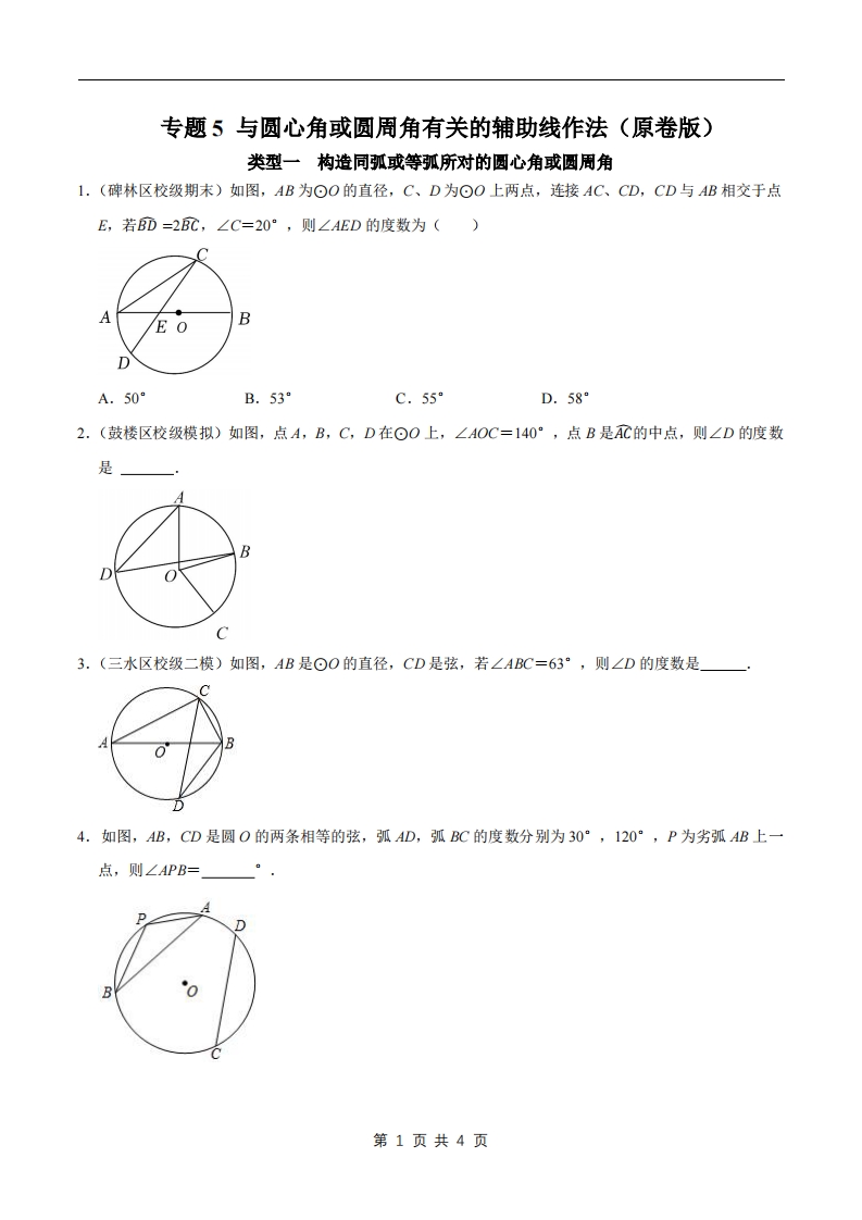 九年级(上)数学 与圆心角或圆周角有关的辅助线作法 期末专题复习(苏科版)