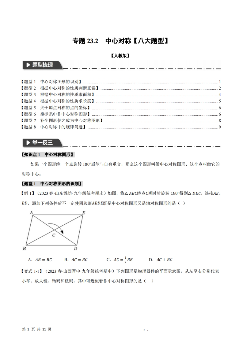 九年级(上)数学 中心对称题型专练(人教版)