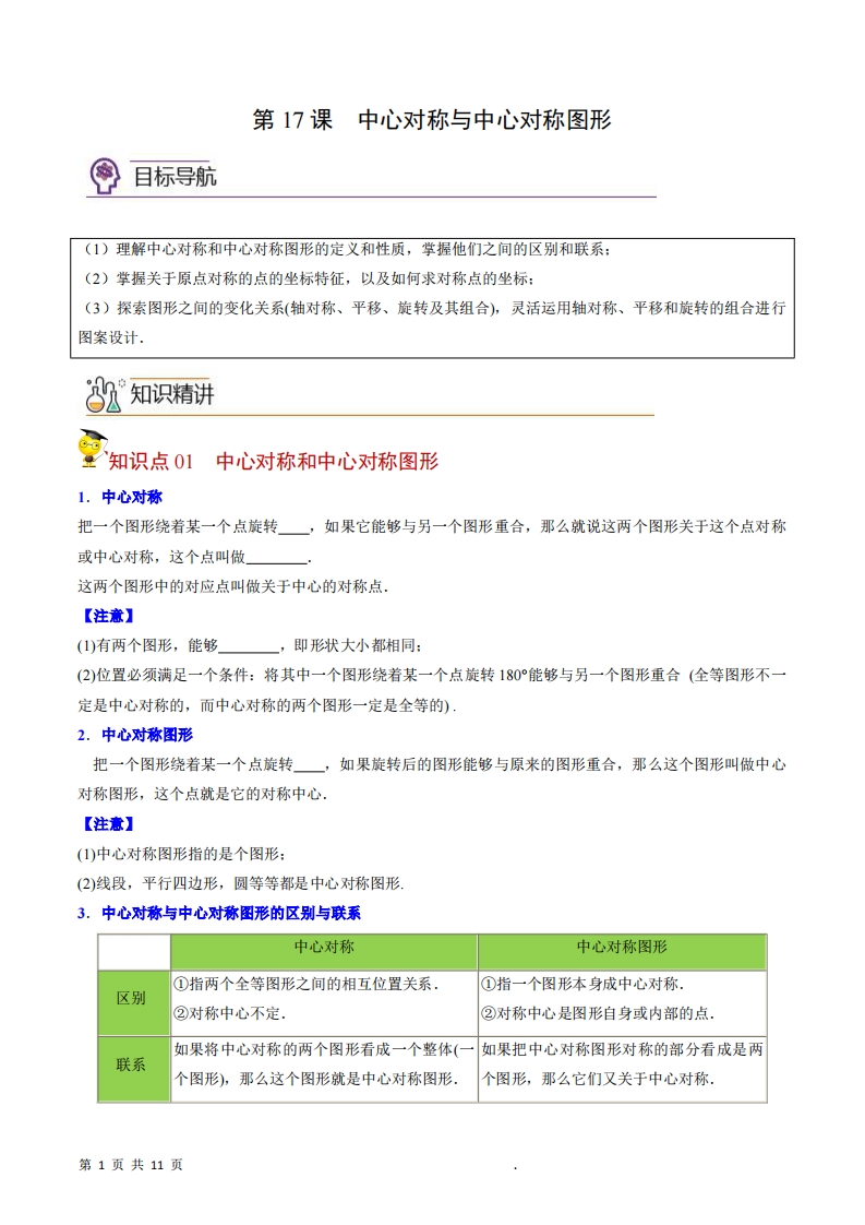 首页九年级数学上册九年级(上)数学 中心对称与中心对称图形同步讲义(人教版))