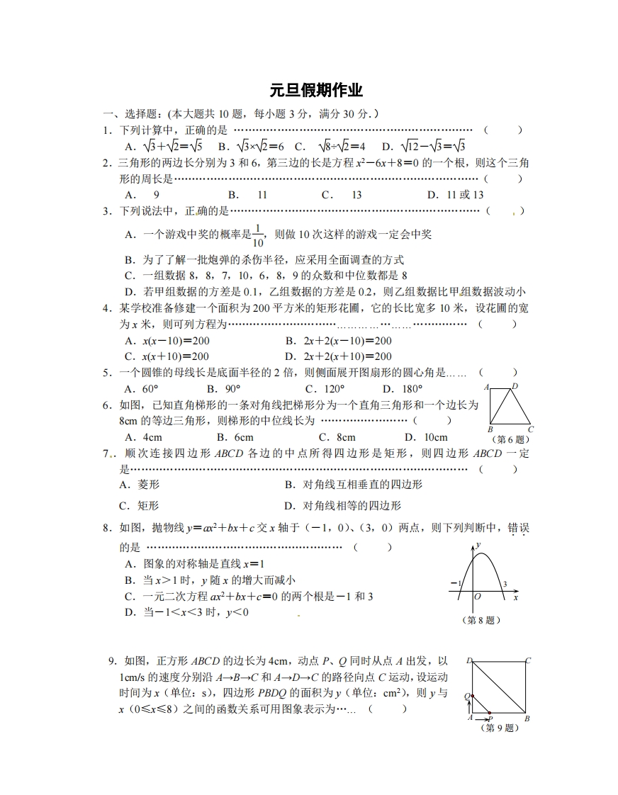 首页九年级数学上册九年级(上)数学 元旦假期作业(苏科版)