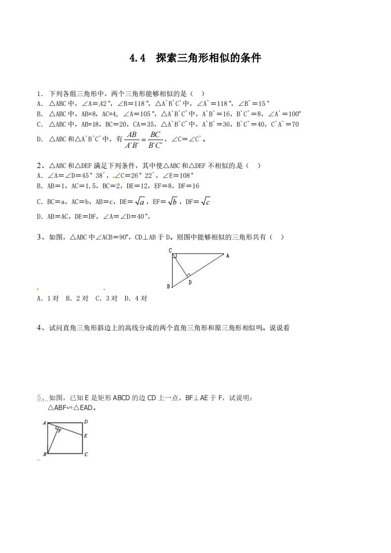 九年级(上)数学 探索三角形相似的条件 同步练习2(北师大版)