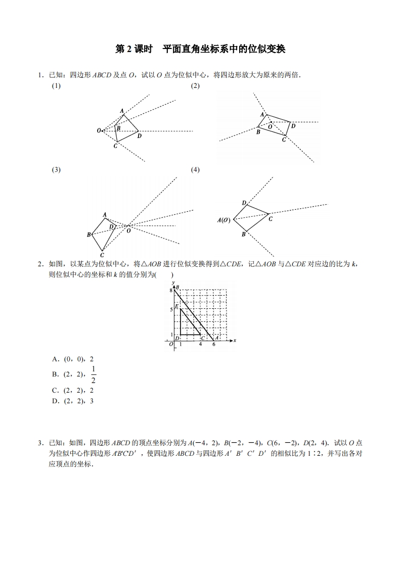 九年级(上)数学 第2课时 平面直角坐标系中的位似变换1(北师大版)