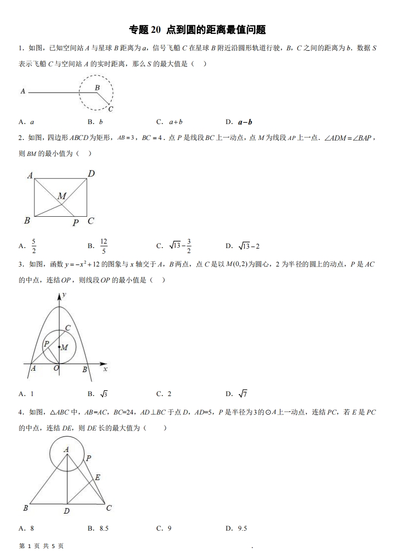 首页九年级数学上册九年级(上)数学 点到圆的距离最值问题(人教版)