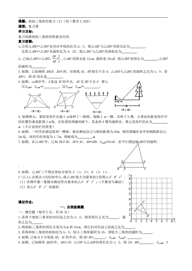 九年级(上)数学 相似三角形的复习(2)(苏科版)