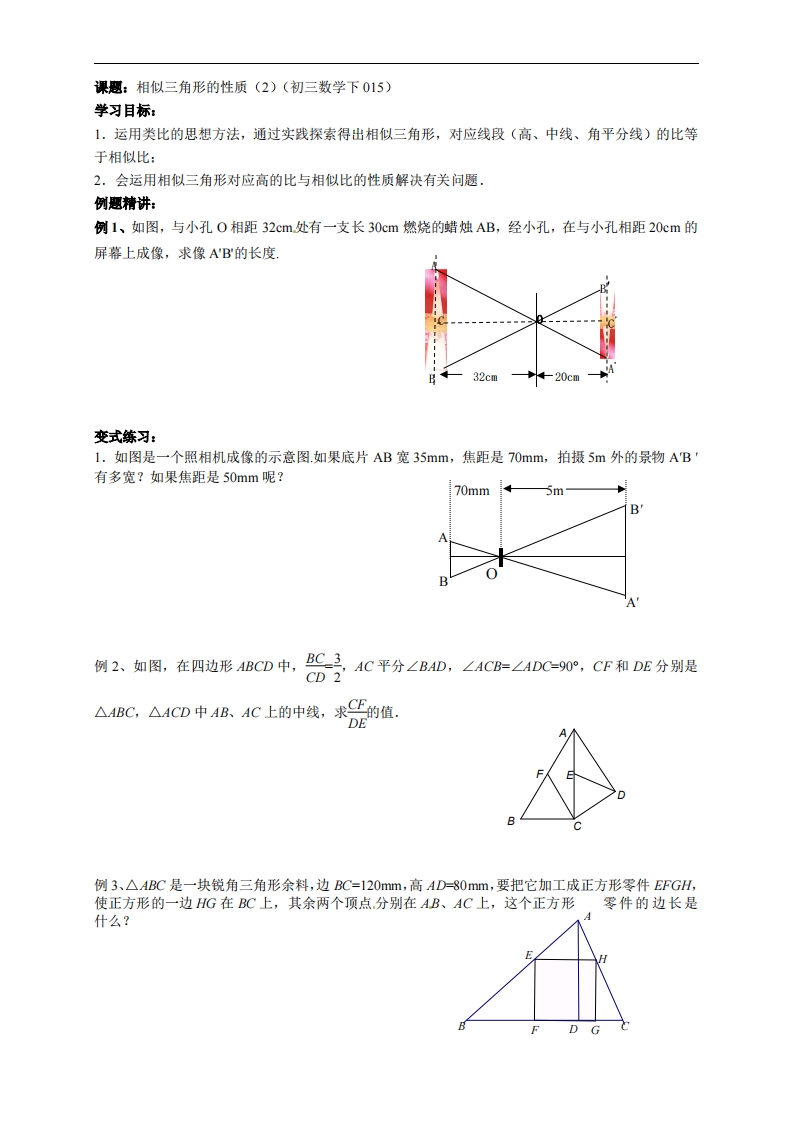 九年级(上)数学 相似三角形的性质(2)(苏科版)