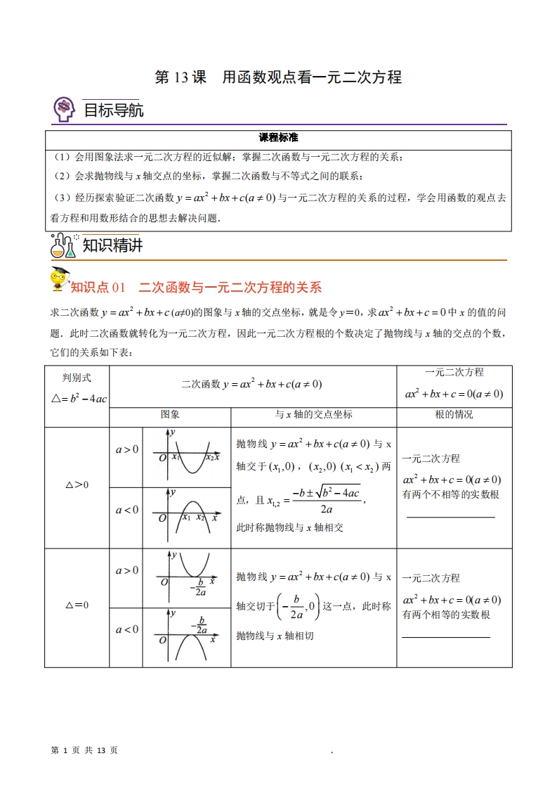 首页九年级数学上册九年级(上)数学 用函数观点看一元二次方程同步讲义(人教版)
