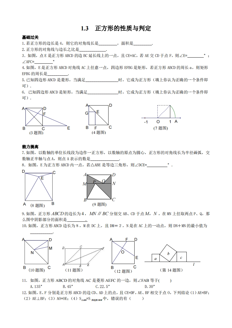 九年级(上)数学 正方形的 性质与判定 同步练习2(北师大版)
