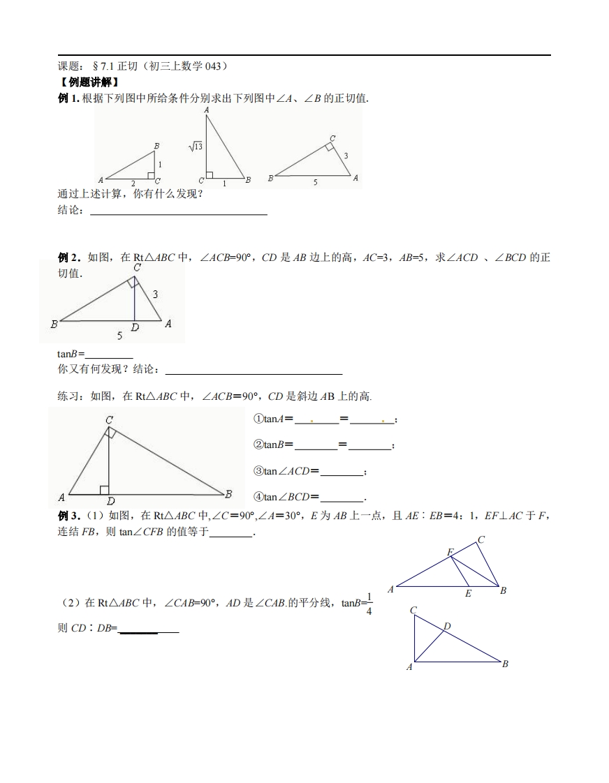 首页九年级数学上册九年级(上)数学 正切(苏科版)