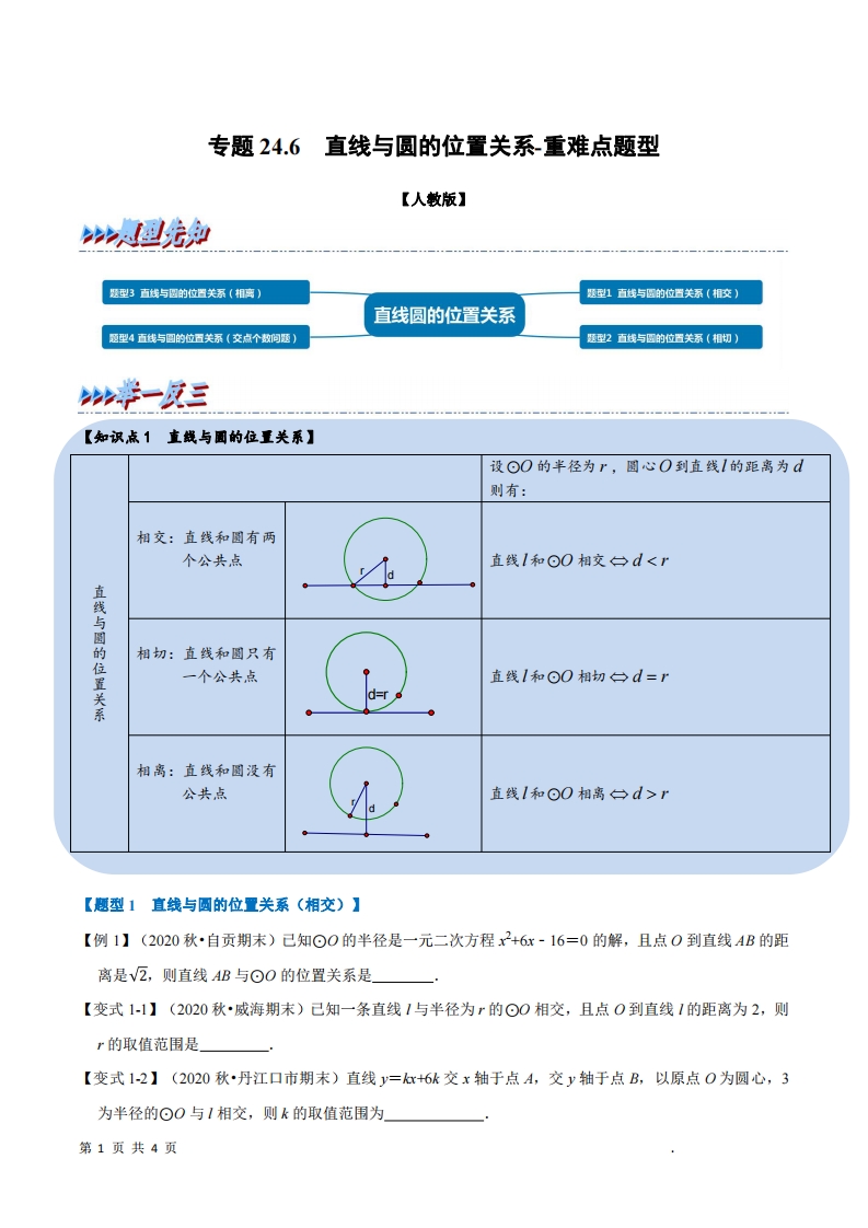 首页九年级数学上册九年级(上)数学 直线与圆的位置关系重难点题型(人教版)