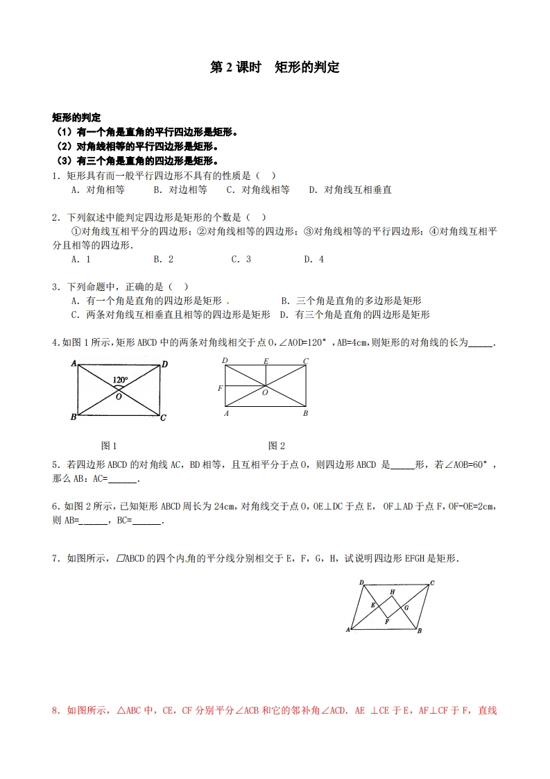 九年级(上)数学 第2课时 矩形的判定2(北师大版)