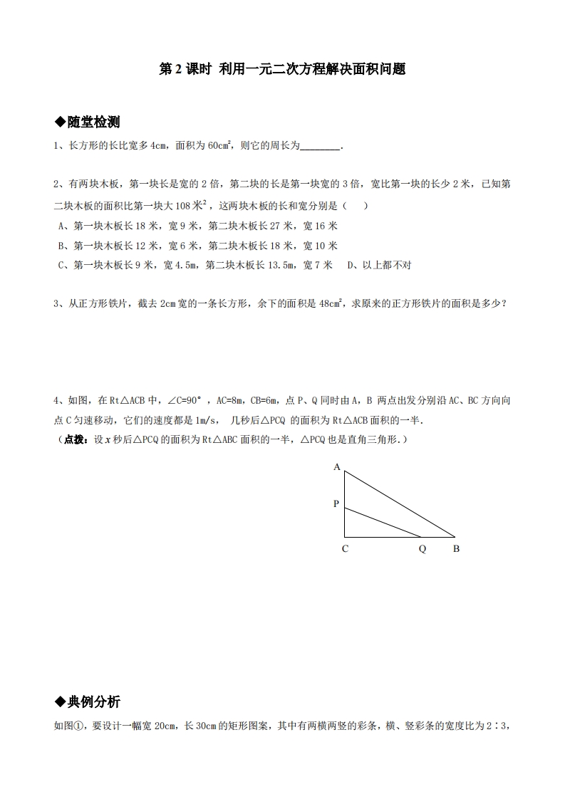 九年级(上)数学 第2课时 利用一元二次方程解决面积问题2(北师大版)