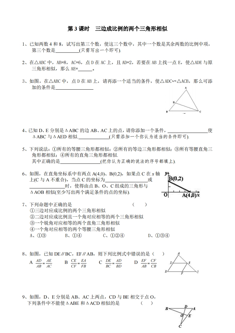 首页九年级数学上册九年级(上)数学 第3课时 三边成比例的两个三角形相似(北师大版)