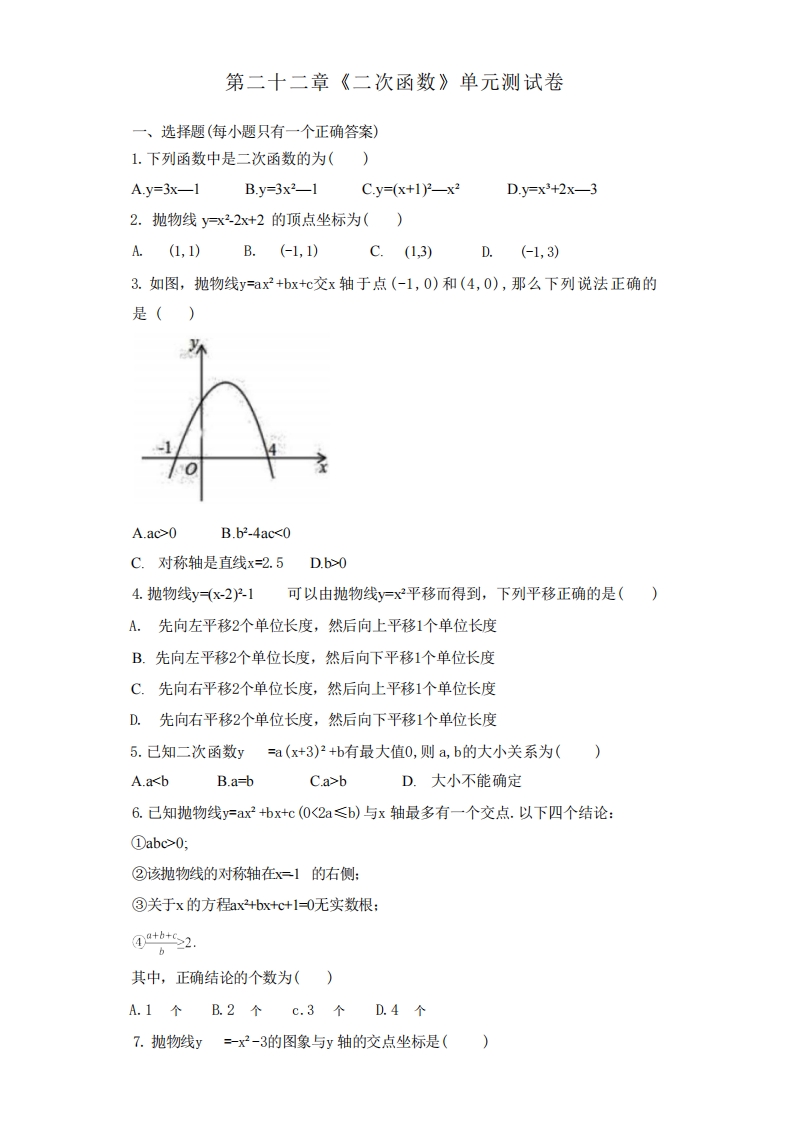 首页九年级数学上册九年级(上)数学 第二十二章《二次函数》 单元测试卷 (解析版)(人教版)