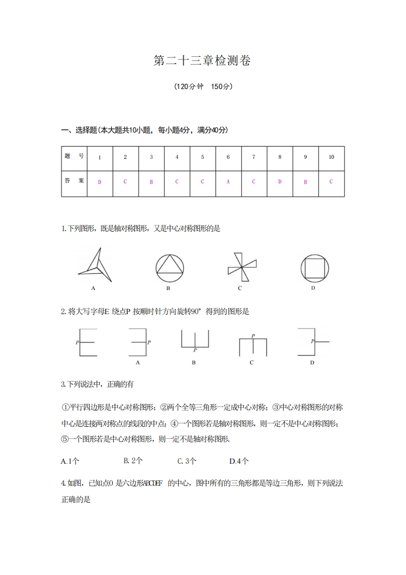 九年级(上)数学 第二十三章《旋转》单元检测卷(有答案)(人教版)