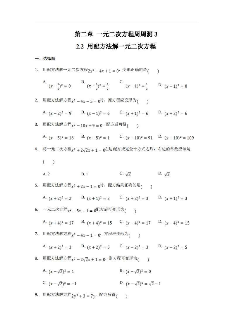 九年级(上)数学 第二章 一元二次方程周周测3(2