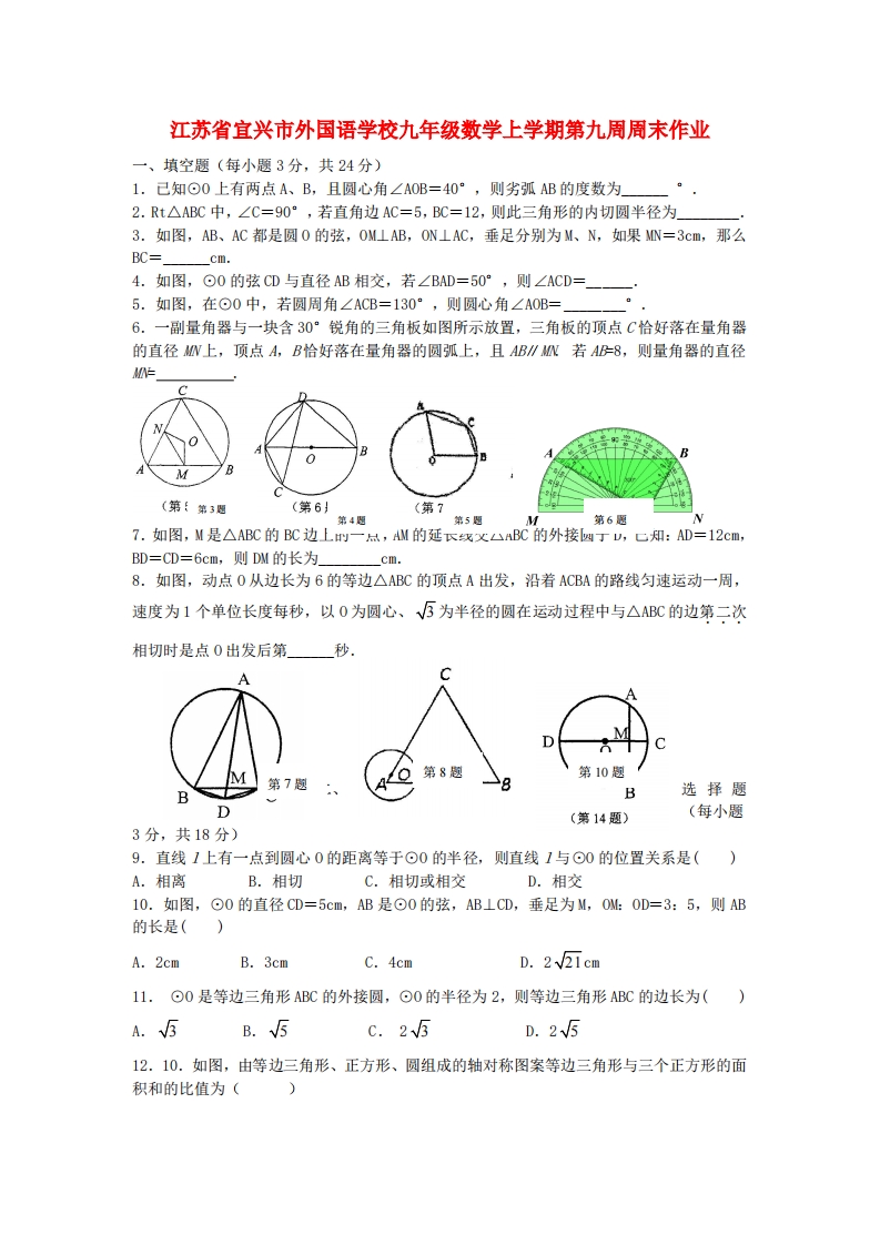 首页九年级数学上册九年级(上)数学 第九周周末作业 (苏科版)