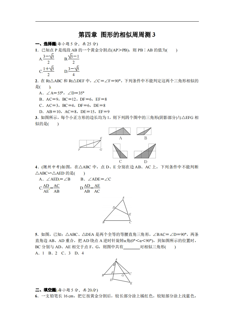 九年级(上)数学 第四章 图形的相似周周测3(4.4~4