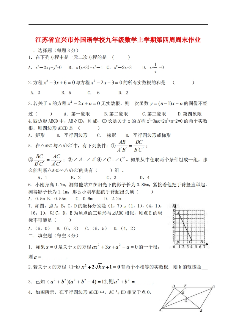 首页九年级数学上册九年级(上)数学 第四周周末作业 (苏科版)
